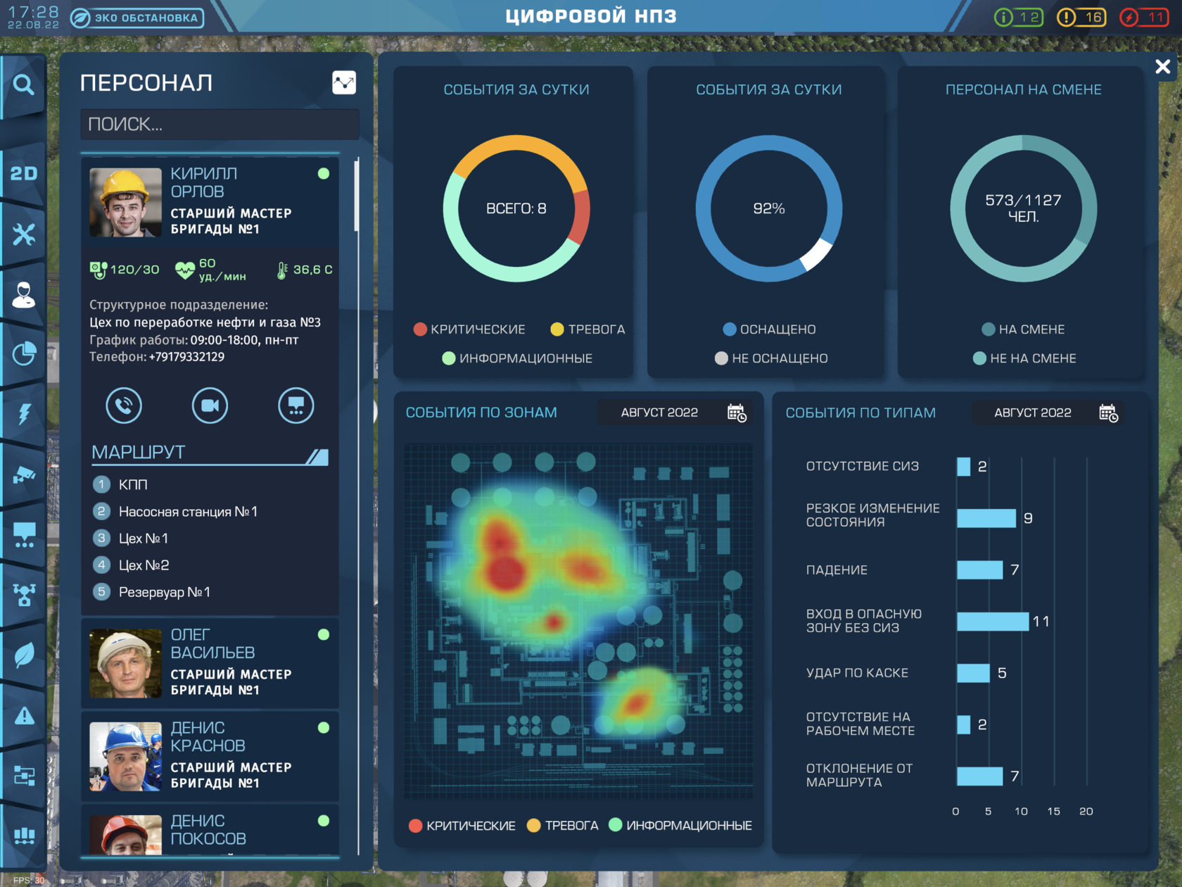 - Математическое и визуальное моделирование развития событий и зоны поражения на основе параметров производственных установок и метеорологической обстановки